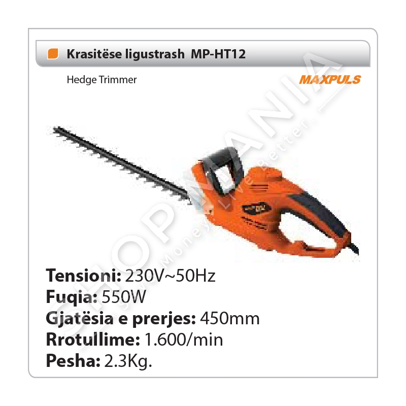 Prerese ligustrash 550W. Perdoret per te prere ligustra ose dege me te trasha dhe u jep atyre formen. Ka nje motorr te fuqishem dhe teper efikas. Eshte shume e lehte ne perdorim.