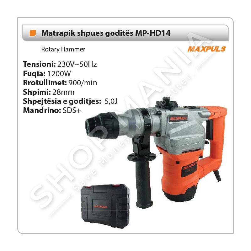 Matrapik shpues godites i markes MaxPuls i llojit MP-HD14.I shoqeruar nga nje valixhe me gjithe aksesoret shtese.