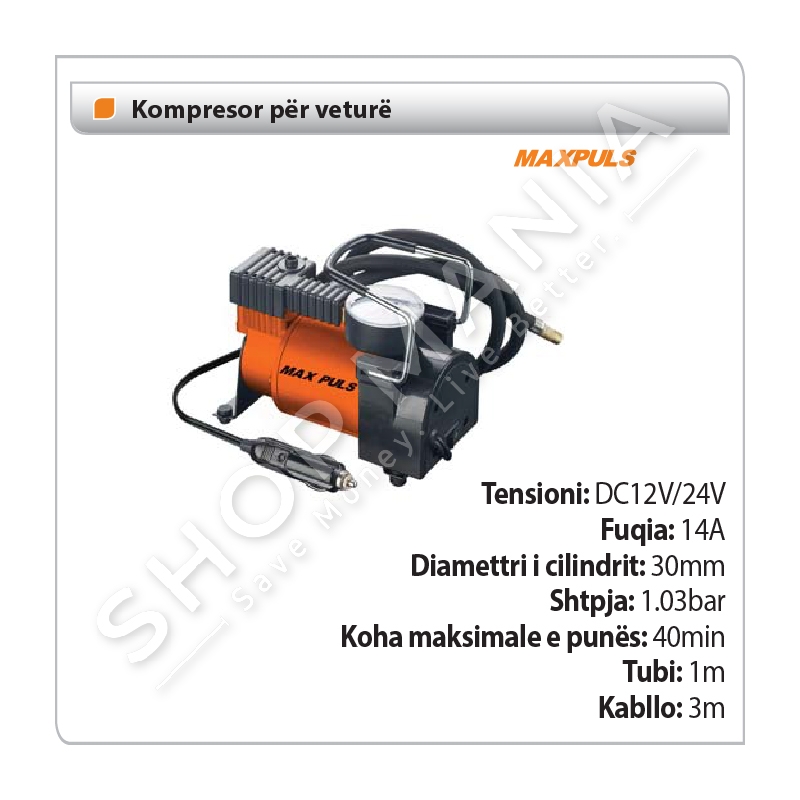 Kompresor i markes MaxPuls per veturen tuaj me keto specifika: