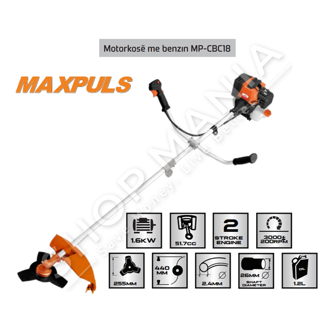 Përshkrimi:Motokose me benzine MAXPULS me motor kapacitet 51.7 cc.