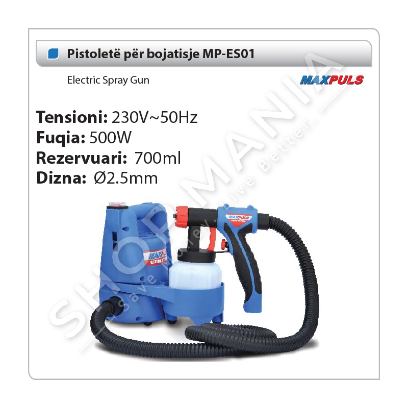Pompe elektrike per lyerje nga marka MaxPuls me motorr 500W dhe rezervuar qe shkon deri ne 700ml.E pershtatshme per lyerjen e cdo ambienti.Shume praktike dhe e lehte ne perdorim.Material rezistent.
