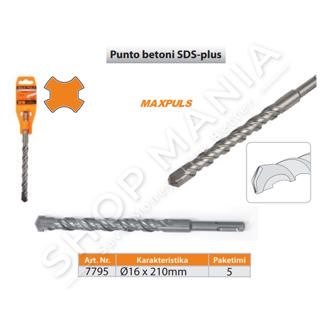 Punto betoni SDS-Plus me performance te mire dhe te qendrueshme gjate shpimit ne beton dhe ne materiale te tjera te ndertimit.