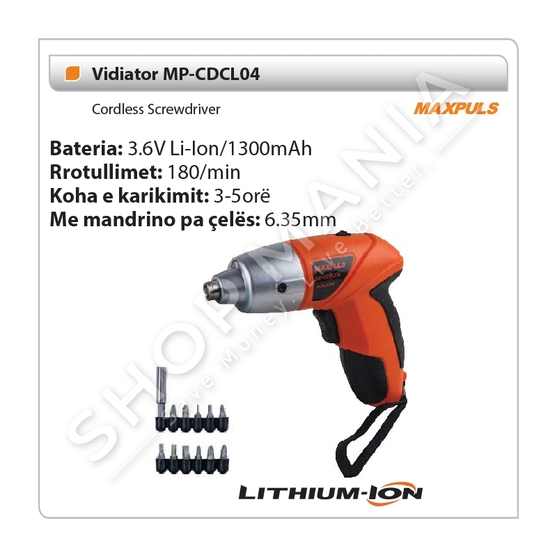 Vidator i markes MaxPuls modeli MP-CDCL04 3.6V me bateri Li-lon.