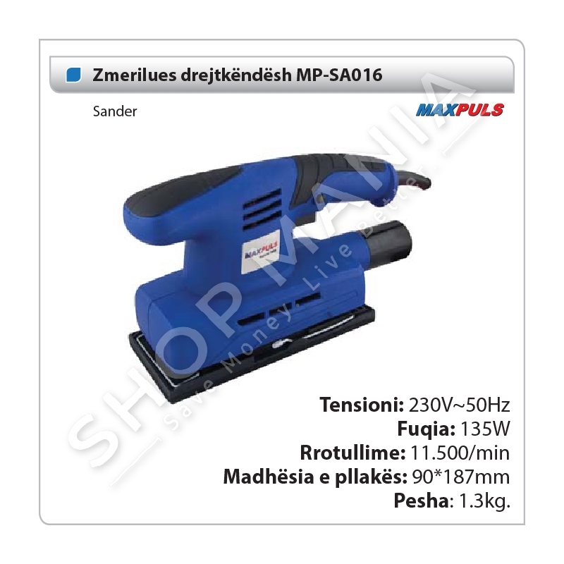 Zmeriluesi kendor me nje fuqi qe shkon deri ne 135W dhe madhesi te pllakes 90*187mm.
