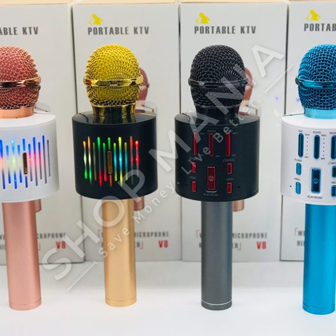 Mikrofon karaoke wireless me butona rregullimi te bassit, volumit. Me funksionin e anulimit te zhurmes perreth per qartesi maksimale te tingullit. I pajtueshem me te gjitha pajisjet me Bluetooth si telefonat IOS dhe Android, tablet, iPad dhe PC. Mjafton te lidhni pajisjen nepermjet Bluetooth dhe regjistroni, kendoni dhe degjoni muzike me mikrofonin karaoke.