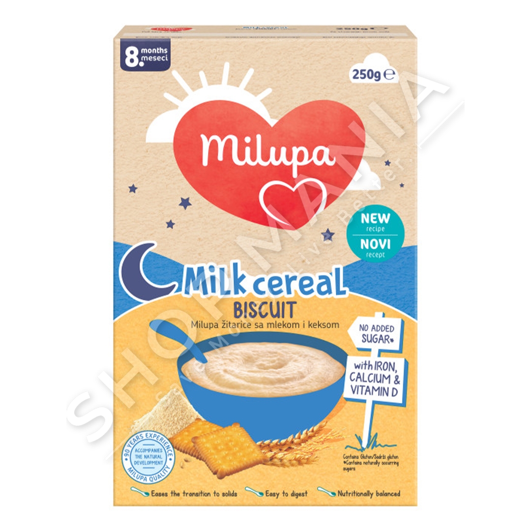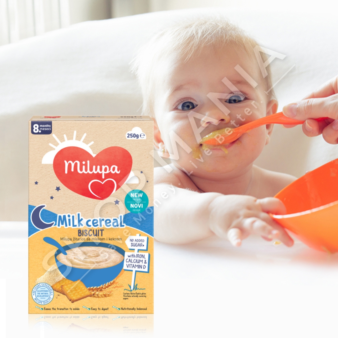 Krem me drithera, biskota dhe qumesht permbajne te gjitha vlerat ushqyese te nevojshme per femije pas muajit te 8 te jetes.