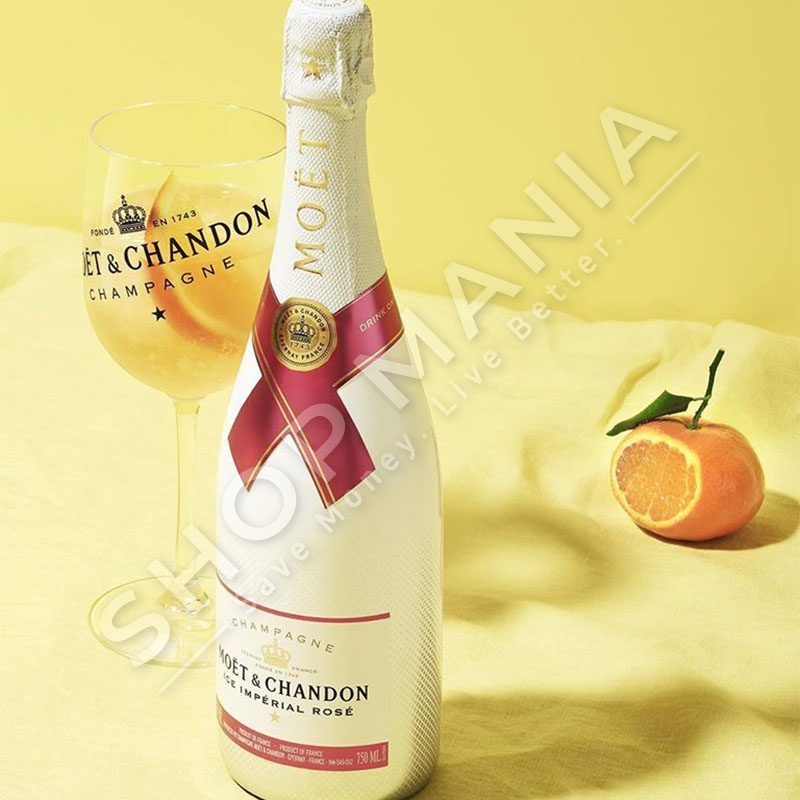 Moet & Chandon Ice Imperial Rose ka ngjyre te gjalle roze.
