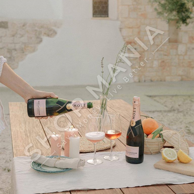 Moet & Chandon Rose Imperial shkelqen ne nje roze te