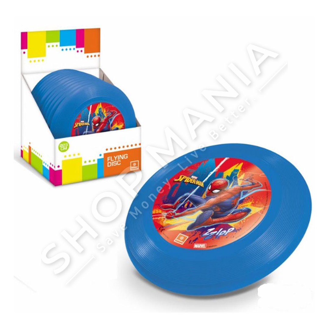 Përshkrimi:Disk fluturues me dizajn SpiderMan eshte nje ide fantastike per loje mes femijeve.Qellimi i lojes eshte qe dy ose me shume lojtare t'ia hedhin diskun njeri-tjetrit dhe ta kapin ne menyre qe te mos bjere ne toke.Specifikat:Materiali: Plastike e sigurt per femijetMe dizajn SpiderManMosha: +3 vjec
