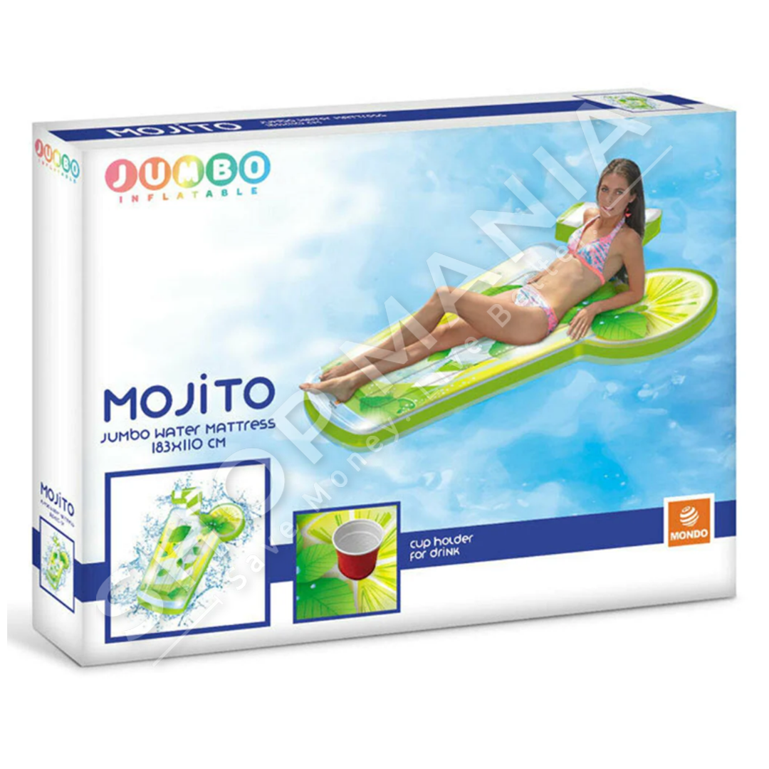 Përshkrimi:Dyshek plazhi ne forme Cocktail Mojito qe te shijoni ditet ne pishine apo ne det ne menyren me argetuese.