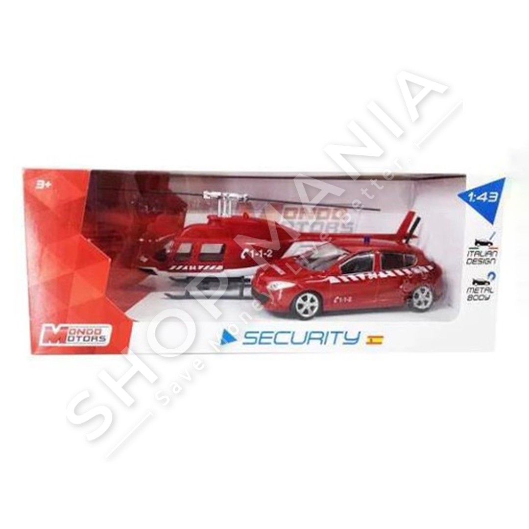 MONDO - MAKINE SECURITY & HELIKOPTER 1:43 +3VJEC "VEHICLE MONDO MOTORS SECURITY SPAIN HELICOPTER/CAR 18 1:43" - 8001011570096