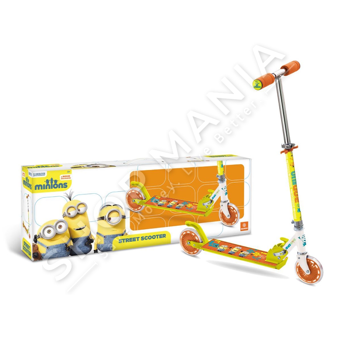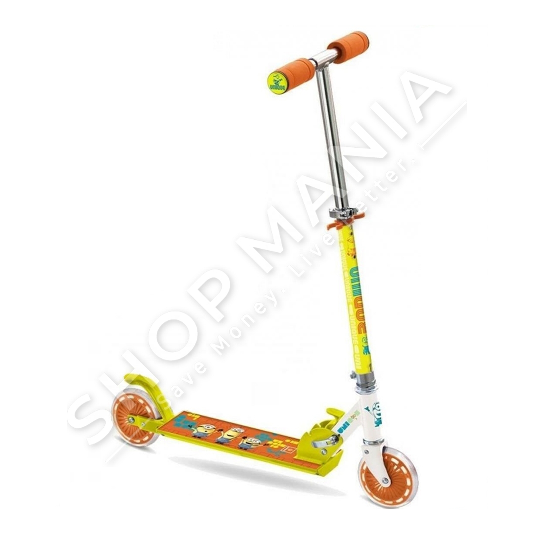 Përshkrimi:Scooter me 2 rrota me dizajn Minions 2.Me timon te rregullueshem ne lartesi dhe frena te pasme.