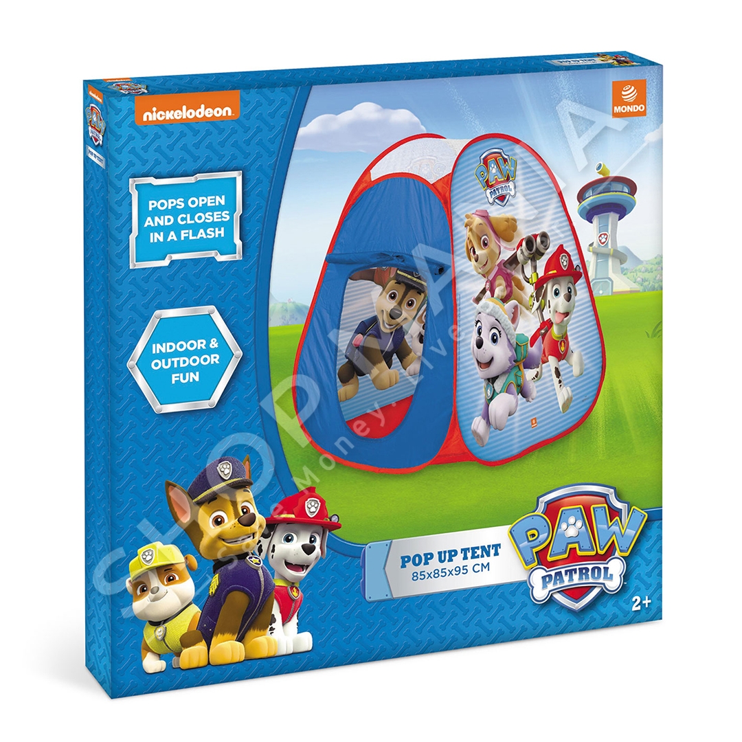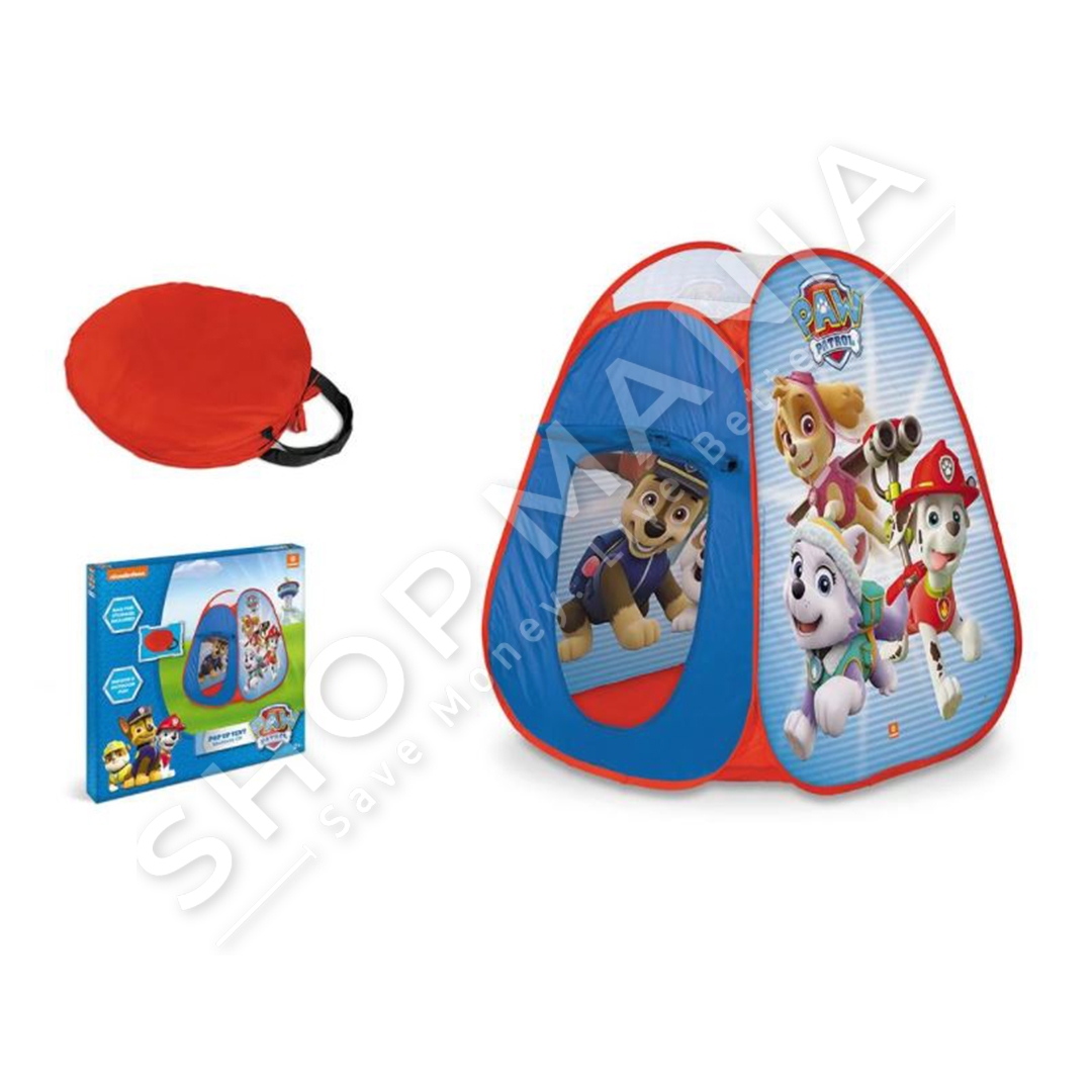 Përshkrimi:Tende per femije me dizajn Paw Patrol.E palosshme deri ne mbyllje te menjehershme per argetim maksimal-Specifikat:Materiali: Poliester dhe celik Me dizajn Paw PatrolMe sistem te lehte montimi Pop-UpIdeale per ambiente jashte dhe brendaPermasat: 85 x 85 x 95 cmMosha: +2 vjecNgjyra: Blu me te kuqe