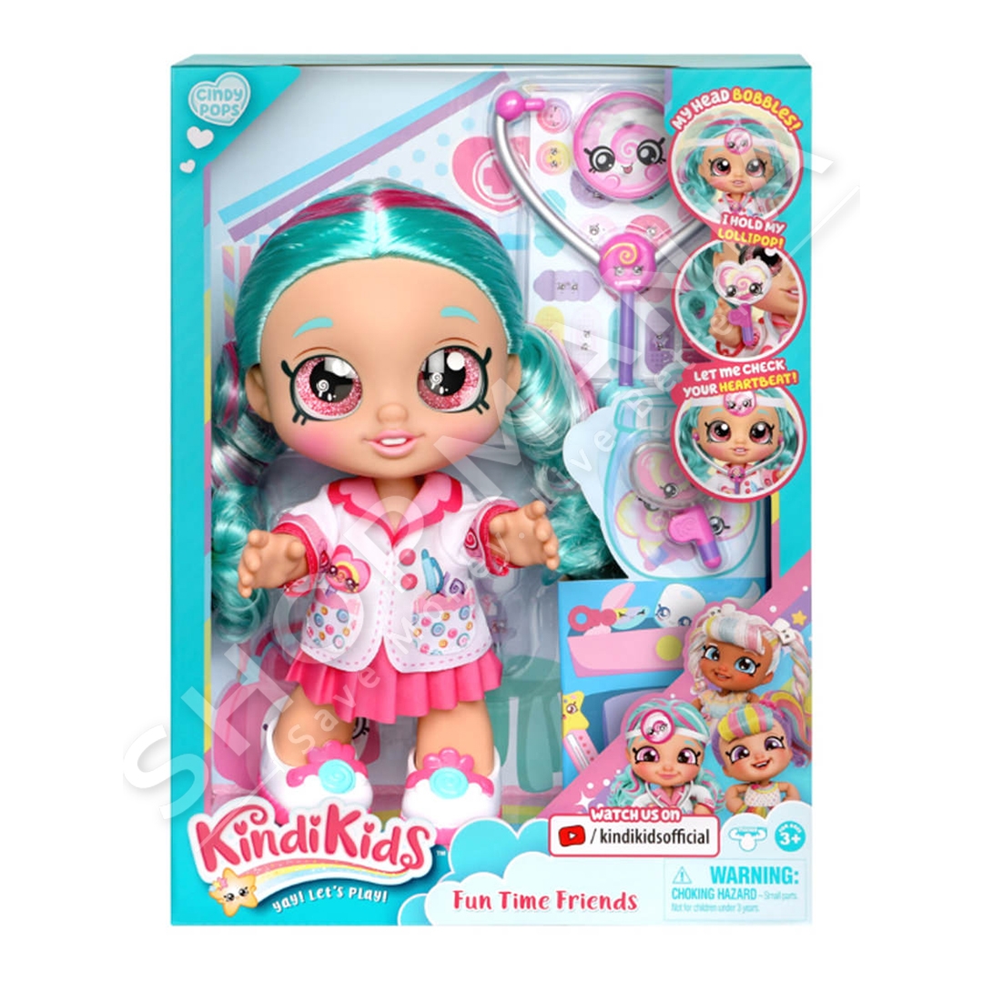 Kindi Kids Fun Time Friends Dr. Cindy Pops eshte kukulla Cindy Pops qe pelqen shume te luaje si doktoreshe. E veshur me nje kostum shume te bukur doktoreshe, dhe me te gjitha pajisjet e domosdoshme per te kuruar pacientet e saj. E pajisur me stetoskop, nje lepirese dhe gjithe veglat e mundshme per te vizituar. Me sy te medhenj plot shkelqim ngjyre roze dhe me floke te kapur bishtaleca ngjyre mente me fije roze. Mosha: +3 vjec