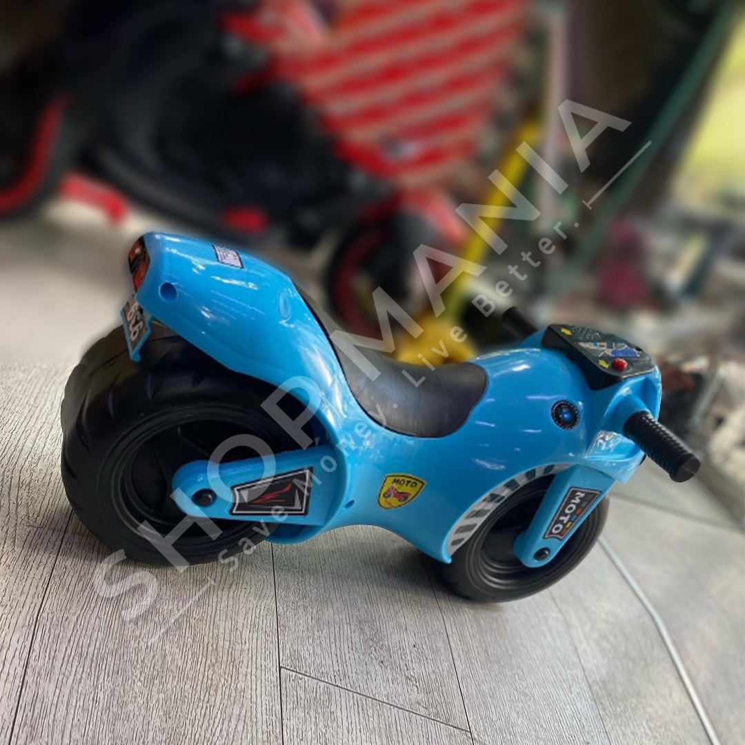 Përshkrimi: Motor me 2 rrota per femije te moshes 2 deri ne 6 vjec. Dizajni i motorit pa pedale i lejon femijet te levizin ne toke me kembet e tyre ndersa ngasin. Ne kete menyre ata permiresojne ekuilibrin dhe koordinimin e tyre.