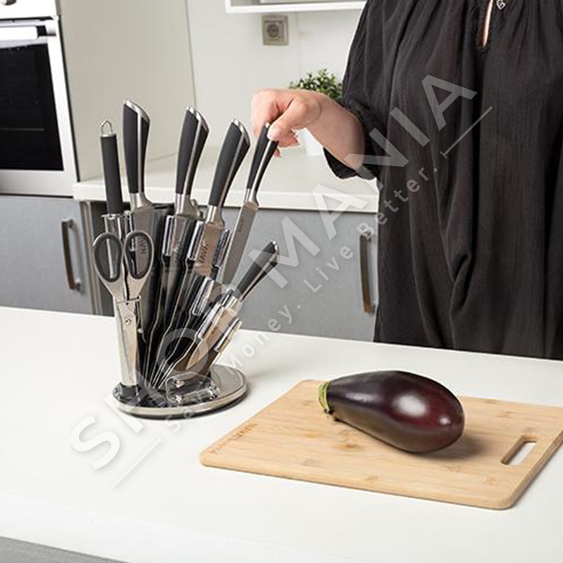 Perbehet nga nje hanxhar, nje thike chef-i, nje thike buke, nje thike per te qeruar fruta e perime, nje thike universale, nje gershere per kuzhine dhe nje mprehese thikash.