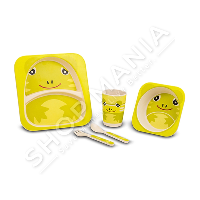 Me material bambuje, ngjyre te verdhe dhe dekor kreativ per femije, ky set pjatash do t’i shtoje ngjyra perditshmerise se femijes suaj.