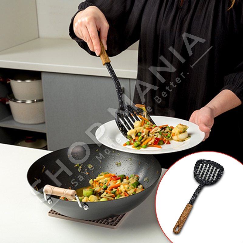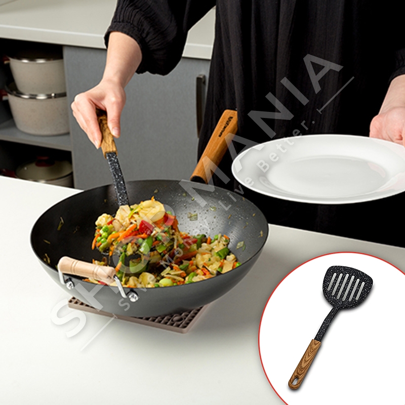 Eshte rezistente ndaj nxehtesise, prej najloni dhe doreze ergonomike prej druri.