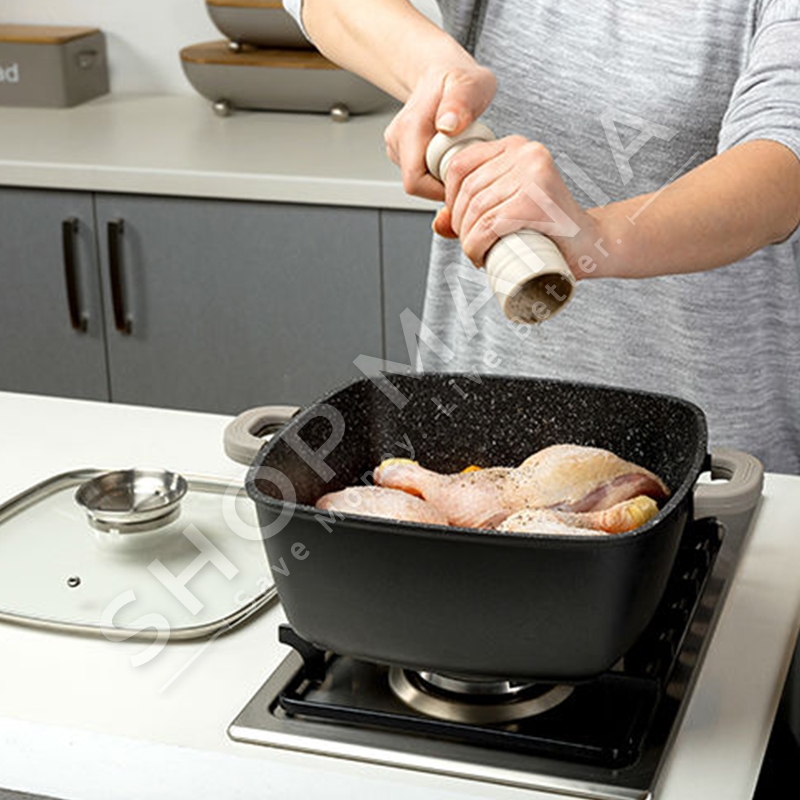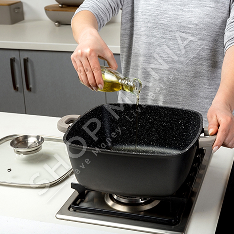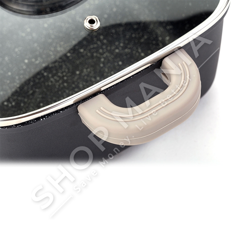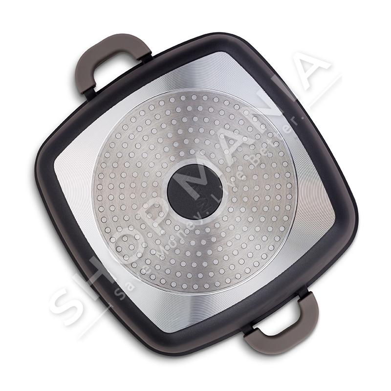 Ka veshje prej guri qe nuk ngjit dhe e shperndan temperaturen ne menyre te barabarte.