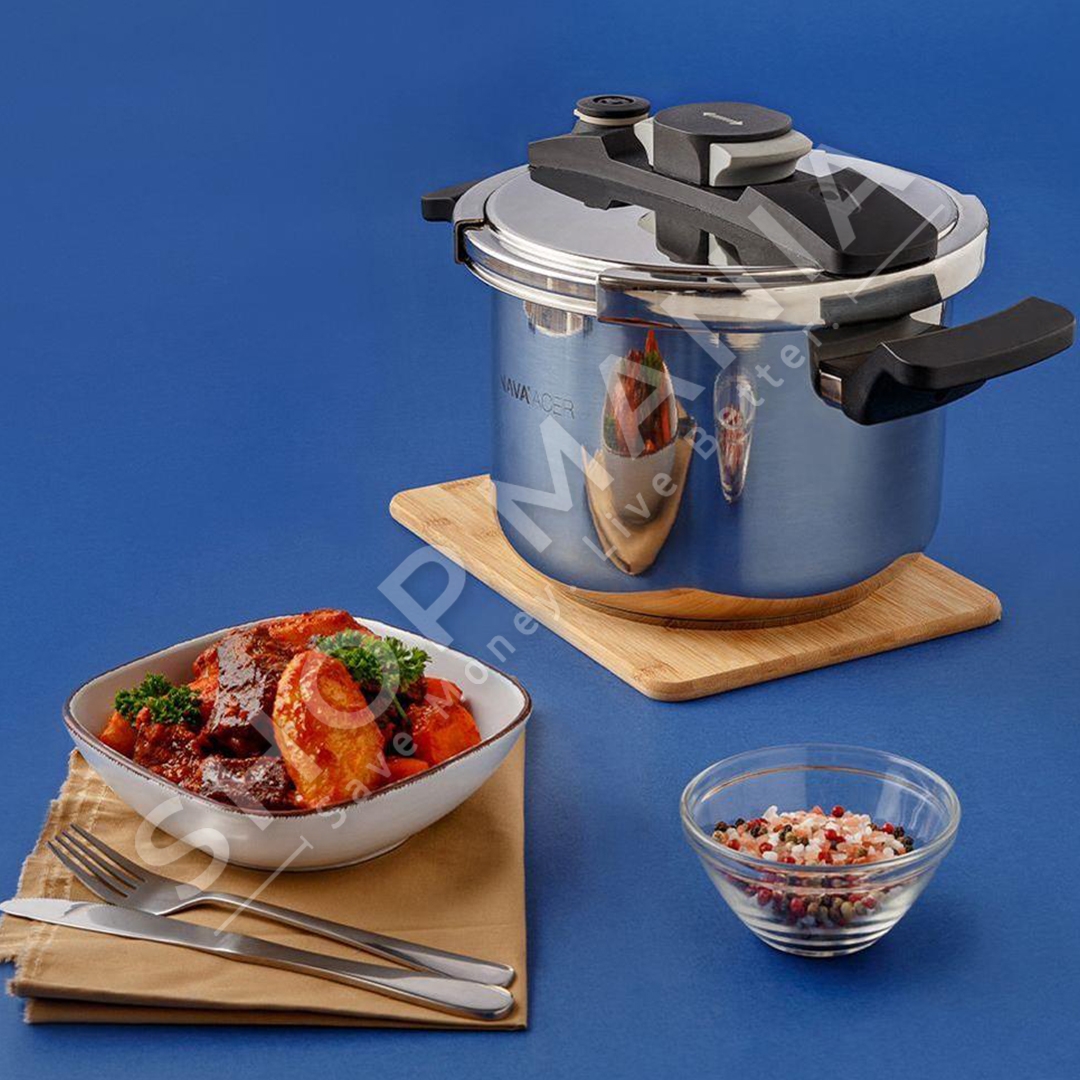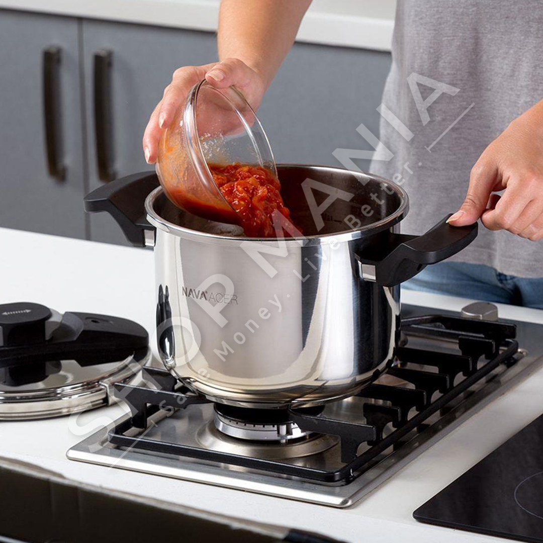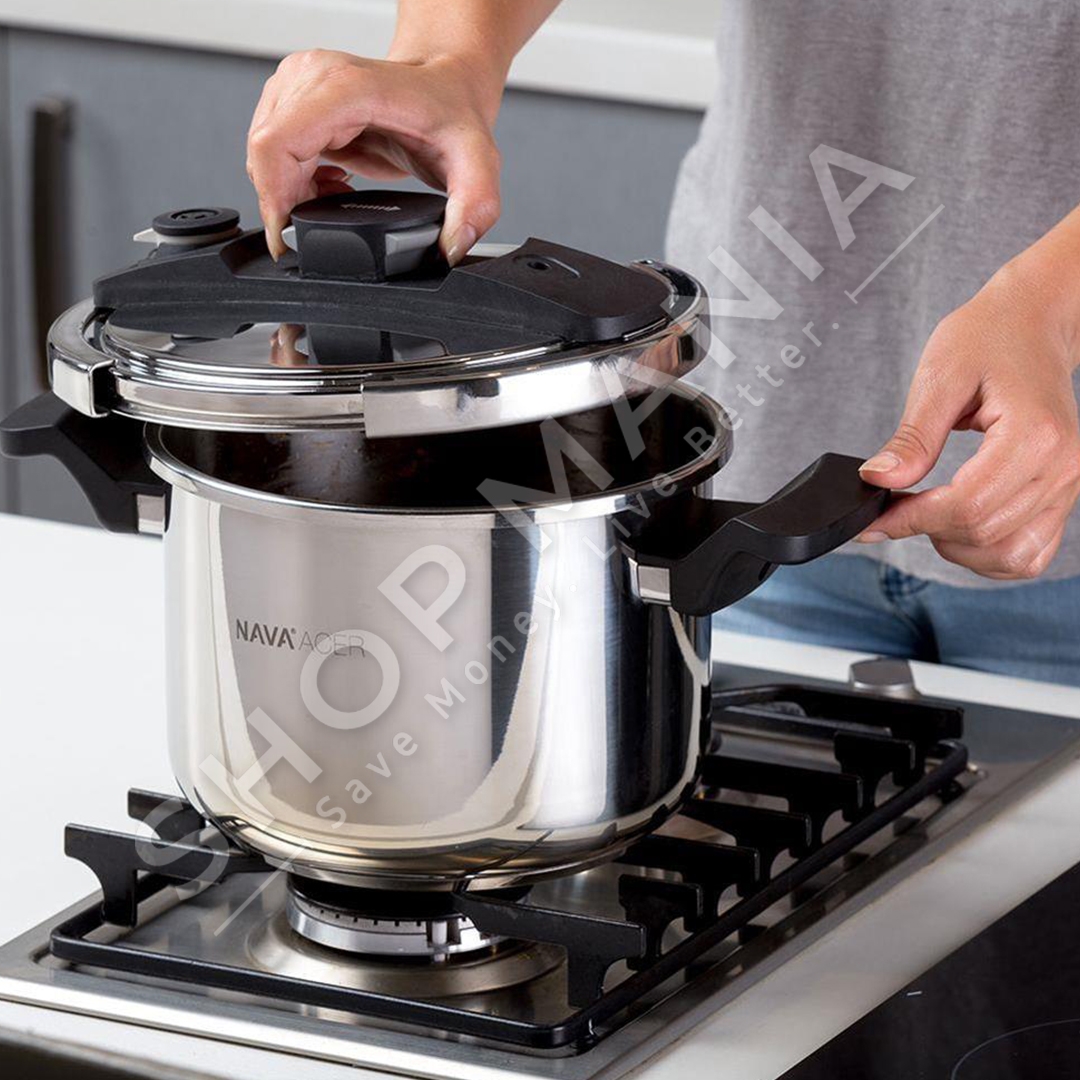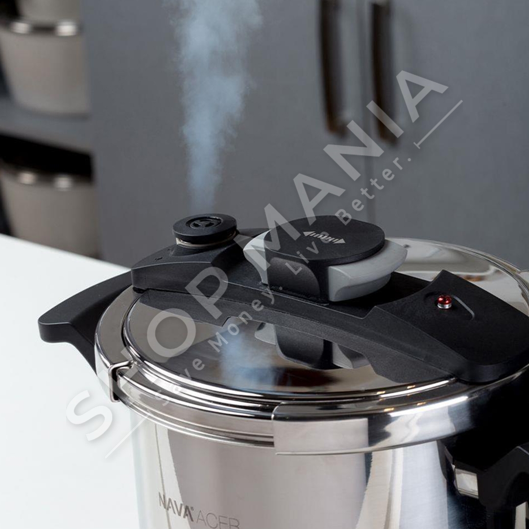 SHOP MANIA ju ofron tenxheren me presion ne material celik inoksi "NAVA STEEL PRESSURE COOKER WITH LID ACER PRESSURE COOKER 6 L".