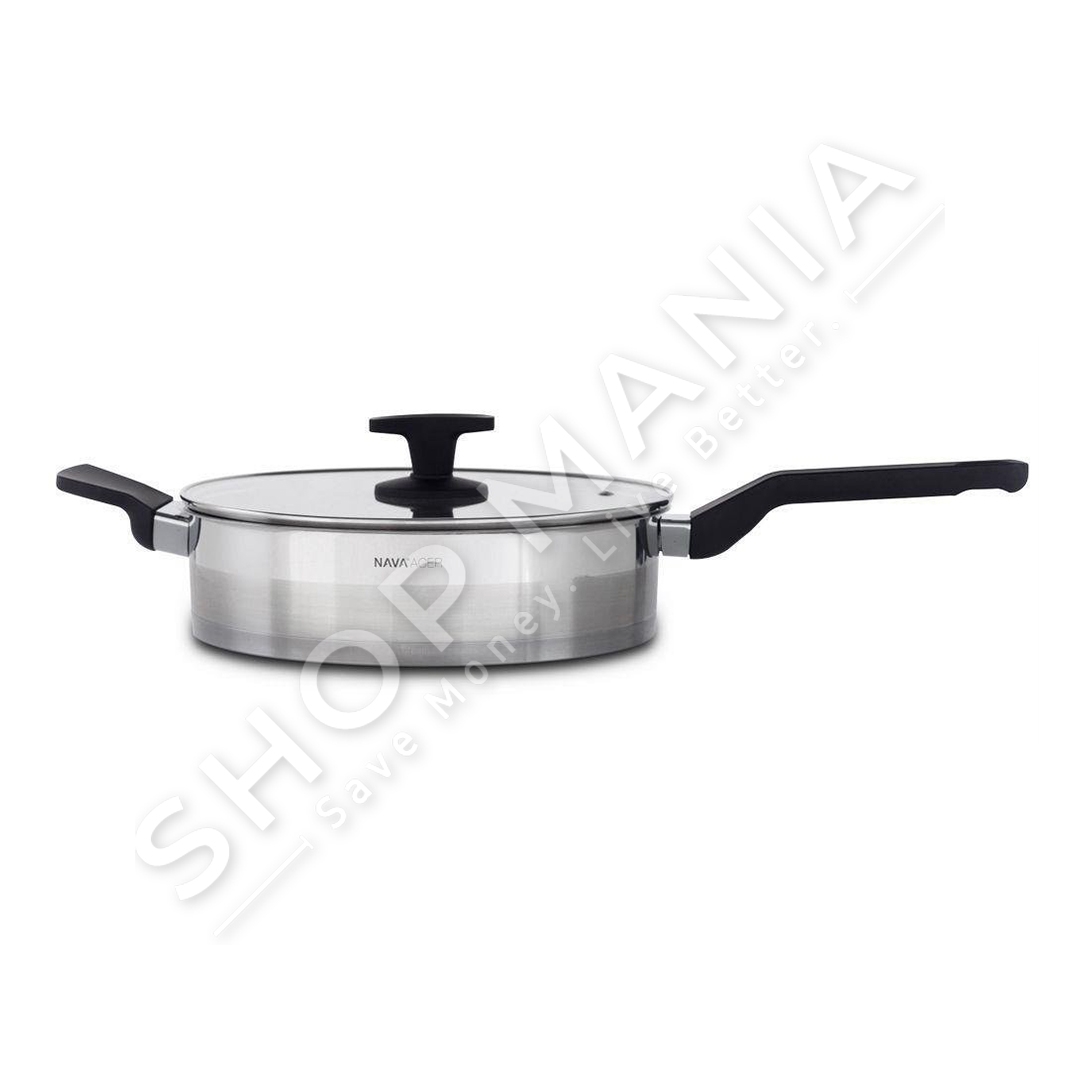 Tigan "Nava Acer Steel Frying Pan with a lid" me diameter 26 cm dhe kapacitet 3.5 L ideal per gatim dhe zierje.