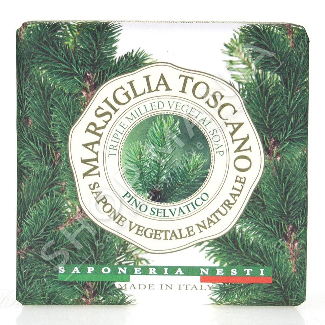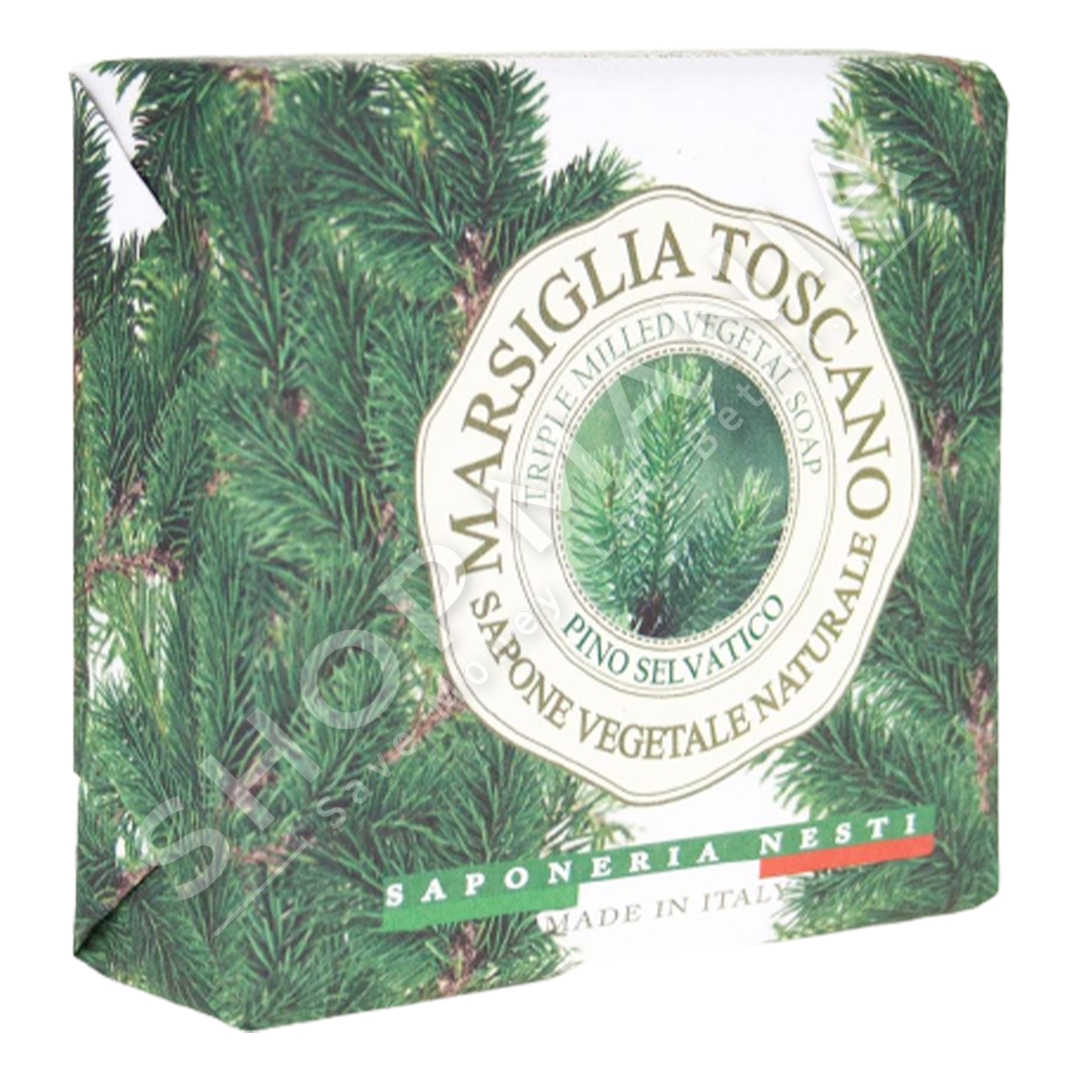 Sapuni Marsiglia Toscano Pino Selvatico me nota intensive dhe balsamike te pishes se eger se bashku me vetite hidratuese te perberesve te saj aktive e lene lekuren te lemuar dhe te rigjeneruar.