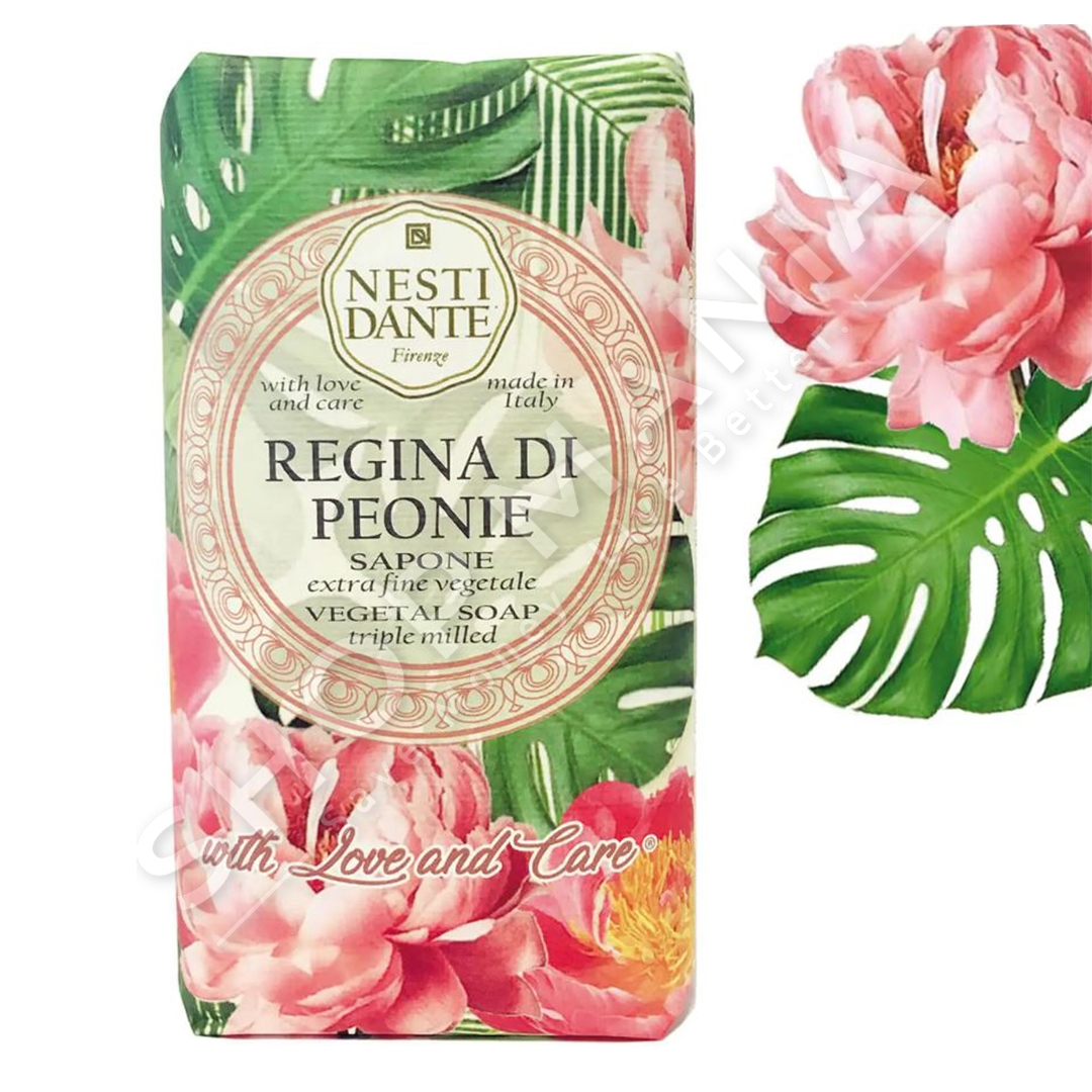 Sapuni With Love & Care Regina di Peonie me arome shperthyese dhe dehese e petaleve te Peonit, nje lule e cila simbolizon optimizmin dhe bukurine e perjetshme.