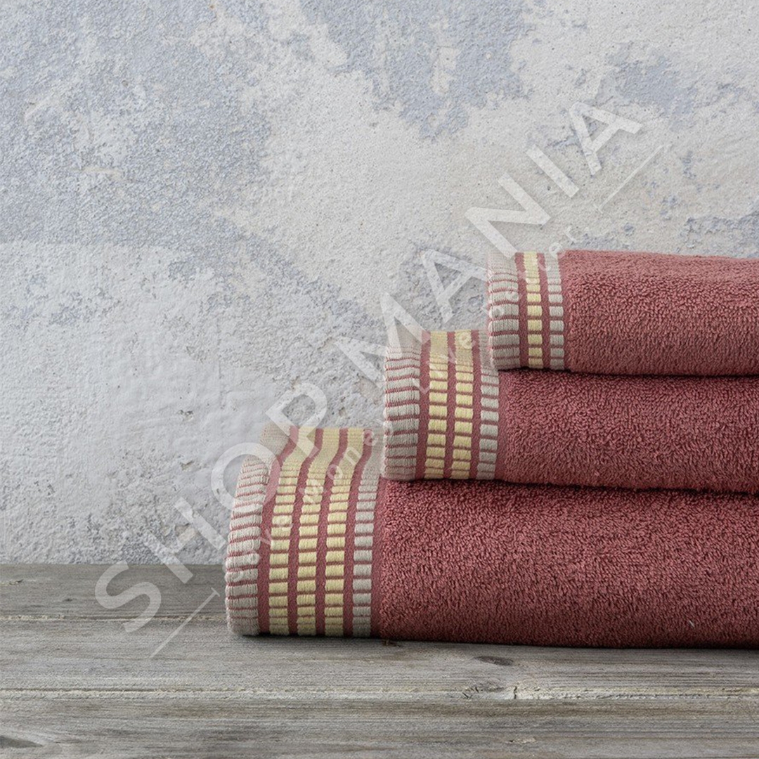 Seti përmban 3 peshqire me permasa 1x30x50cm, 1x50x90cm dhe 1x70x140cm.