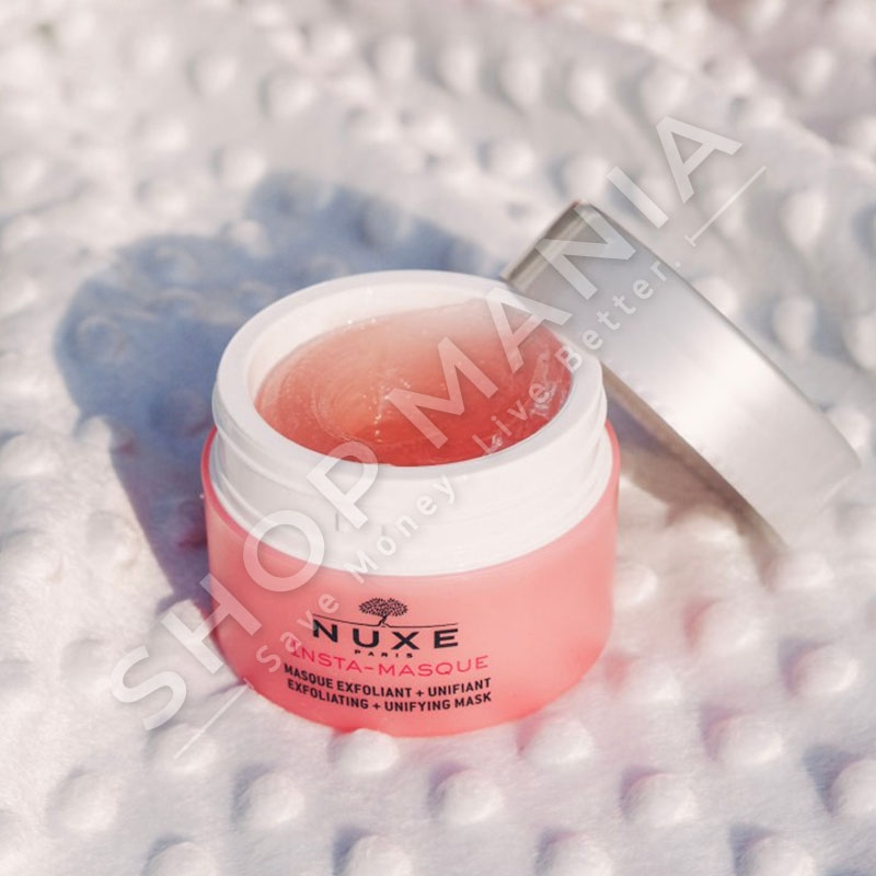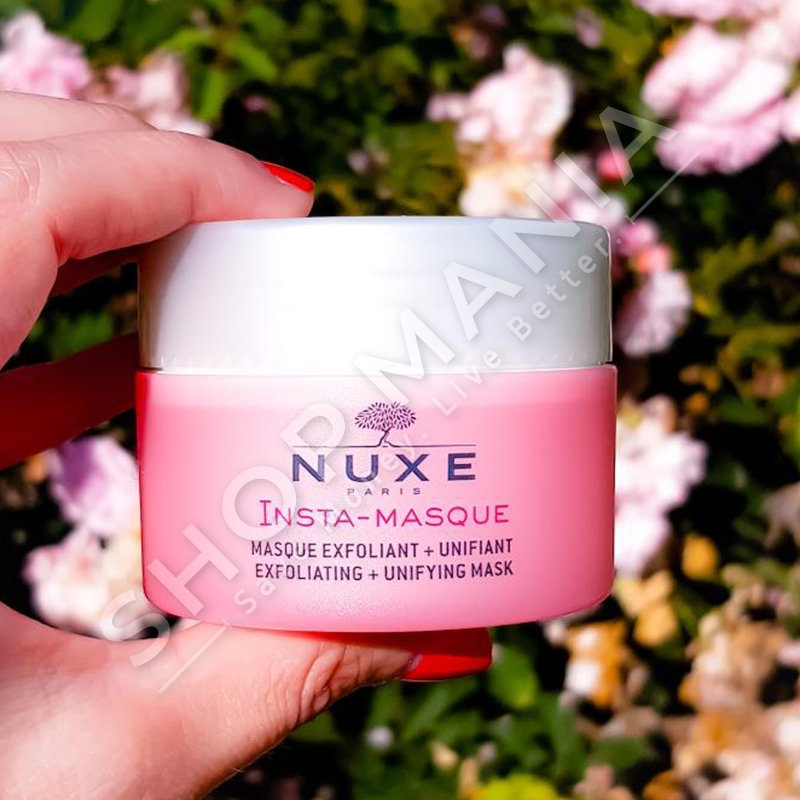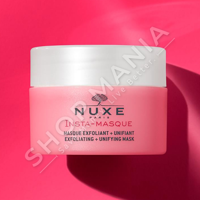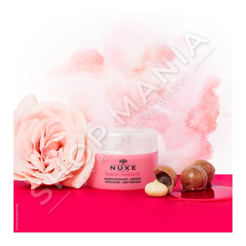 Kremi eksfoliues per fytyren tuaj me efekt unifikues "Insta-Masque - Masque Exfoliant + Unifiant" i kombinuar me ujin e luleve Rose, vajin Macadamia dhe me pluhurin e imet me origjine natyrore unifikon lekuren per vetem dy minuta pas aplikimit te produktit.