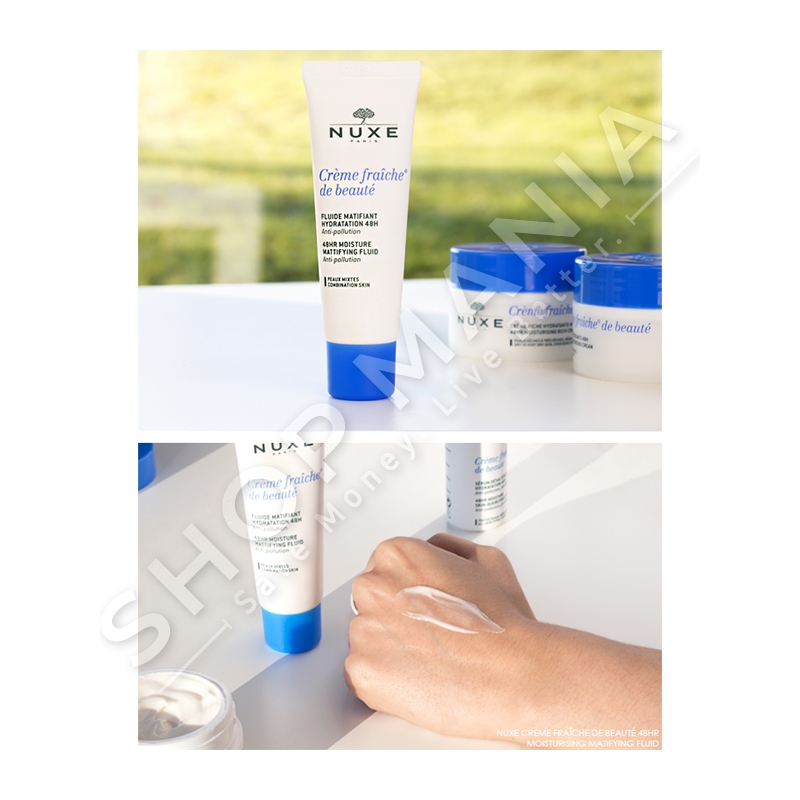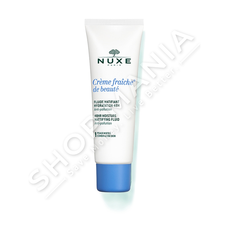Kremi fluid hidratues per fytyren "Crème Fraiche de Beauté® Fluide Matifiant Hydratation 48h" me qumesht bimesh dhe ekstrakt nga algat e detit siguron 48 ore hidratim per lekuren tuaj, e qeteson ate dhe e mbron nga papastertite.