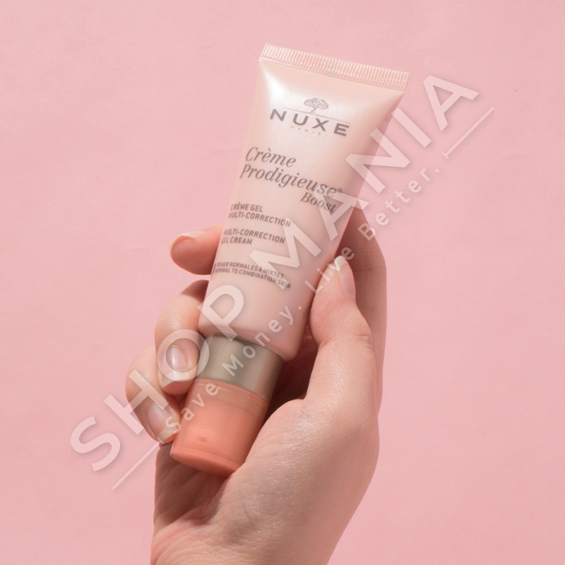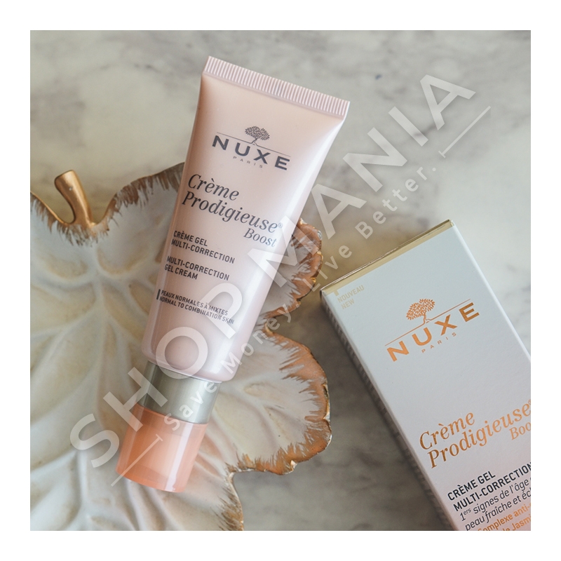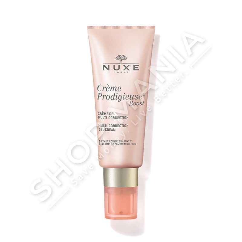 KremI/xhel per fytyren me efekt multi-korrigjues "Crème Prodigieuse® Boost - Crème Gel Multi-Correction" me nje kompleks antioksidues me lule Jasemin ne perberje te tij lufton kunder efekteve te demshme te jetes se perditshme si lodhja, stresi, papastertite duke respektuar ekuilibrin natyror te lekures.