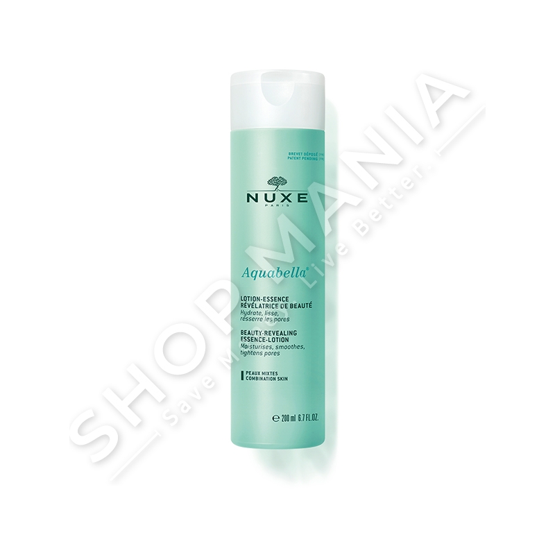 Locioni hidratues per fytyren "Aquabella® Lotion-Essence Révélatrice de beauté" mbeshtjell lekuren me nje freski hidratuese duke e permiresuar dhe rafinuar njekohesisht strukturen e saj.