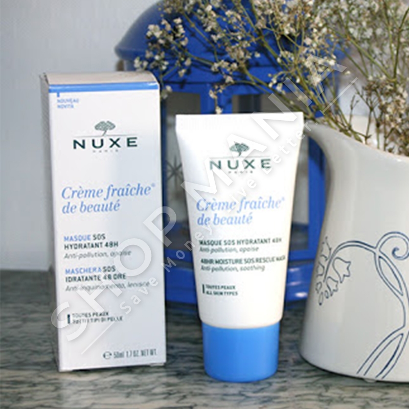 Maska hidratuese per fytyren "Crème Fraiche de Beauté® Masque SOS Hydratant 48h" hidraton, qeteson dhe mbron lekuren tuaj nga papastertite deri ne 48h.