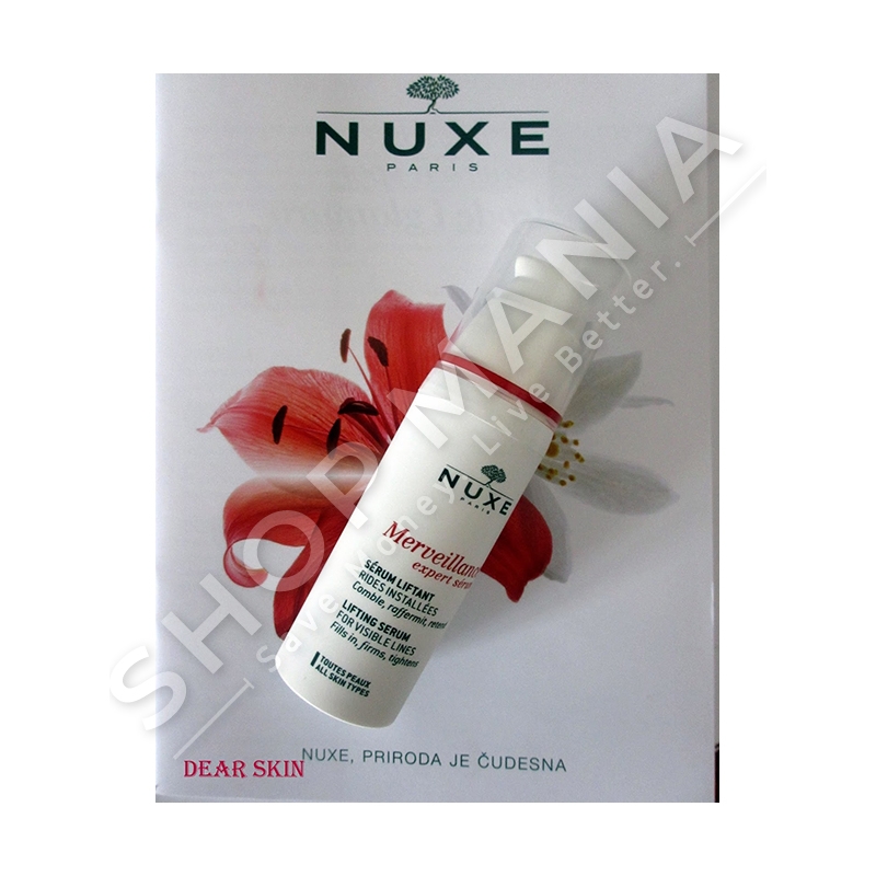 Laboratori i Nuxe arriti te zbuloje ne zemer te lules "Day Lily" 12 molekula aktive me veti te shkelqyera kunder plakjes dhe pas disa vitesh studimi solli linjen Merveillance ® Expert me efekt lifting qe korrigjon linjat dhe rrudhat e fytyres dhe i jep lekures nje tonifikim te dukshem.