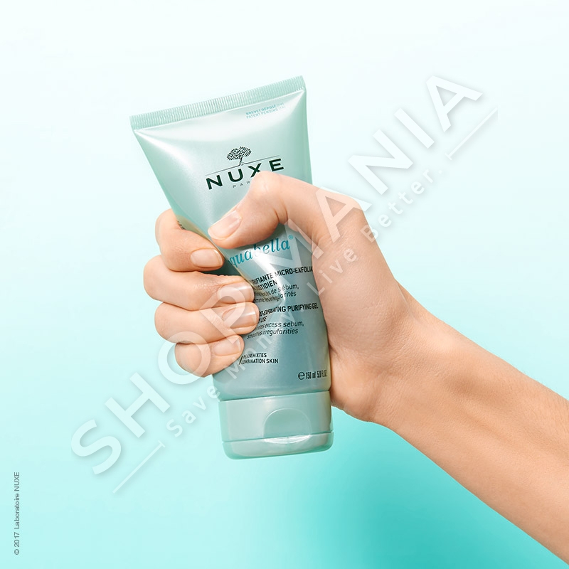 Xheli purifikues me mikro-eksfoliant per perdorim te perditshem "Aquabella® Gelée Purifiante Micro-exfoliante" pastron thellesisht lekuren pa e thare ate.