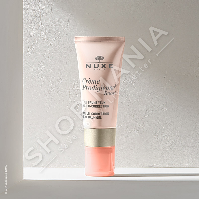 Xheli/balsam korrigjues per rrathet e syve "Crème Prodigieuse® Boost - Gel Baume Yeux Prodigieux Multi-Correction" me kafeine bimore dhe kompleks antioksidant me lule Jasemini korrigjon dhe ndihmon mbrojtjen e zones rreth syve nga veprimet e jashtme.