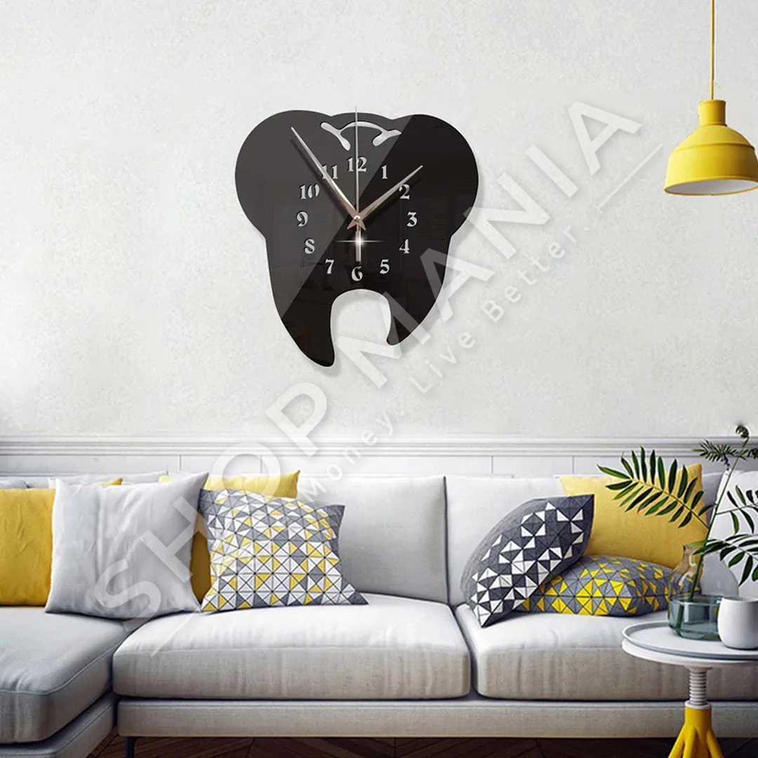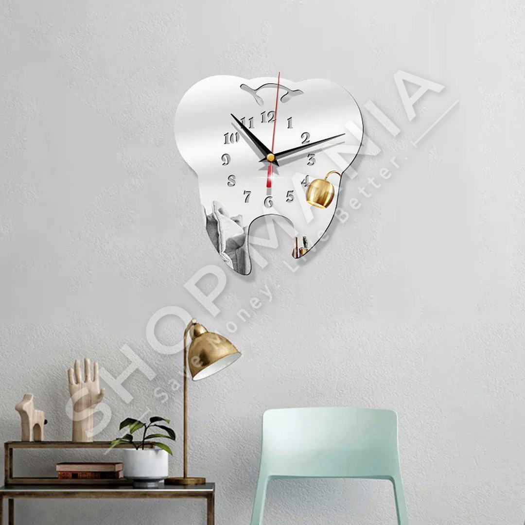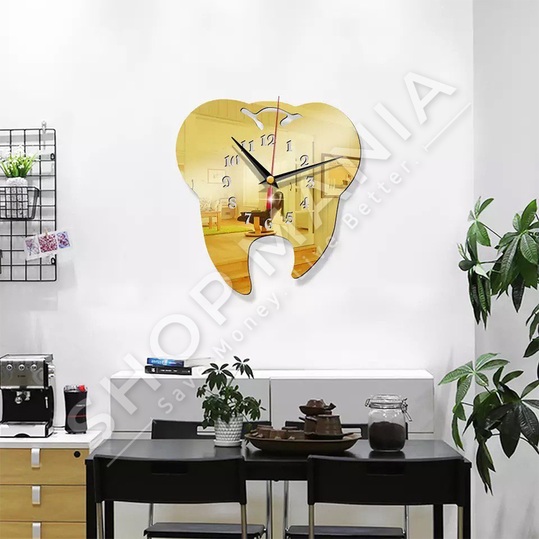 Pershkrimi:Modernja gjithmone ne SHOP MANIA!Ore murale ne forme dhembi.Ora eshte me gnjitje dhe efekt 3D.E pershtatshme kryesisht per ambiente dentare.