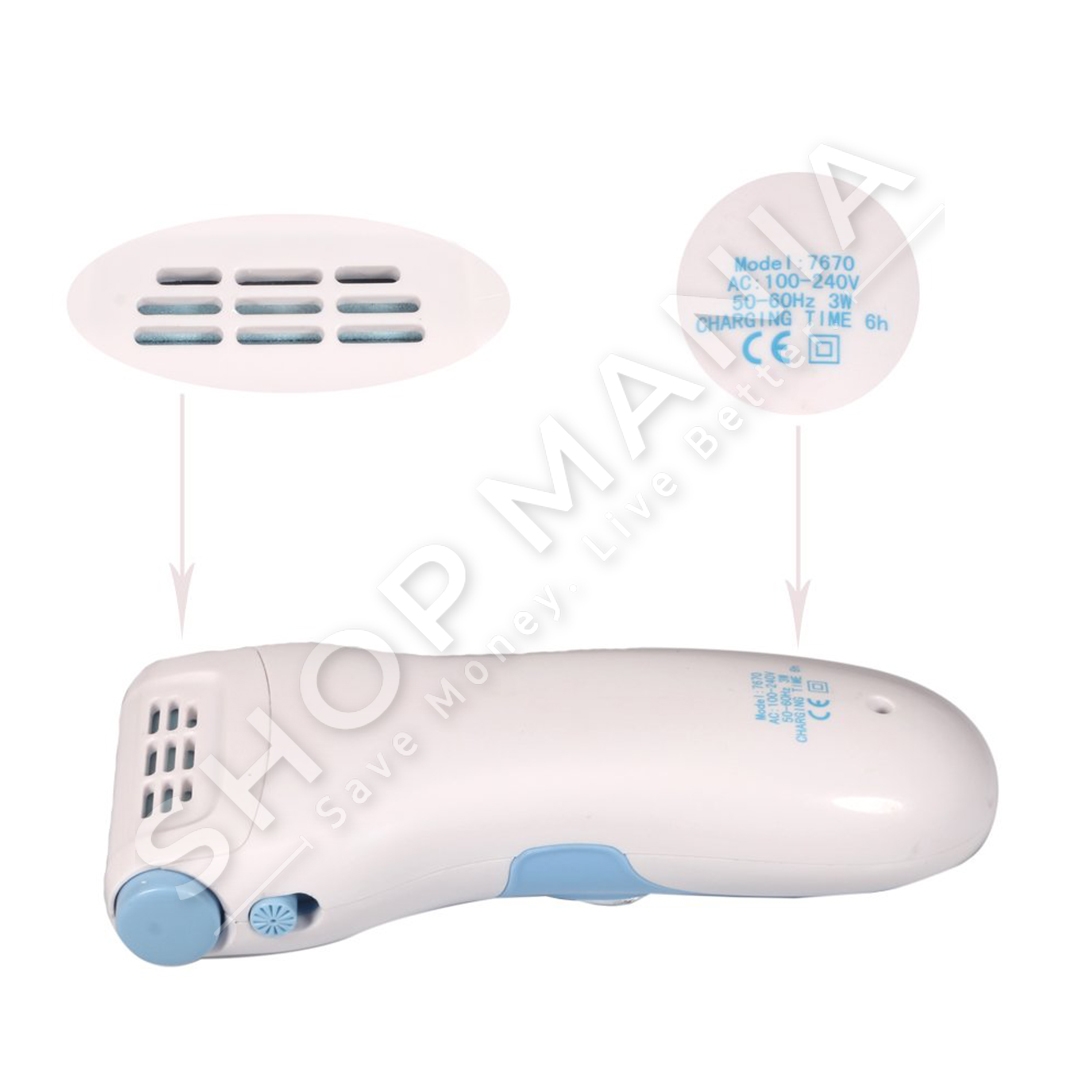 Pajisje per trajtimin e kallove per nje lekure te bute. Ne saje te kokes se saj rrotulluese eleminon kallot dhe lekuren e thate te kembeve. Funksionon me karikim.