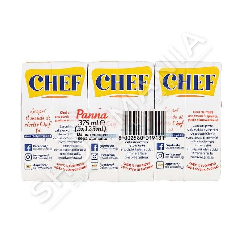 Kremi i kuzhines Chef nga Parmalat eshte nje krem gatimi qe ploteson te gjitha nevojat e konsumatorit dhe ofron nje nivel te larte sherbimi fale formulave te ndryshme ne dispozicion.