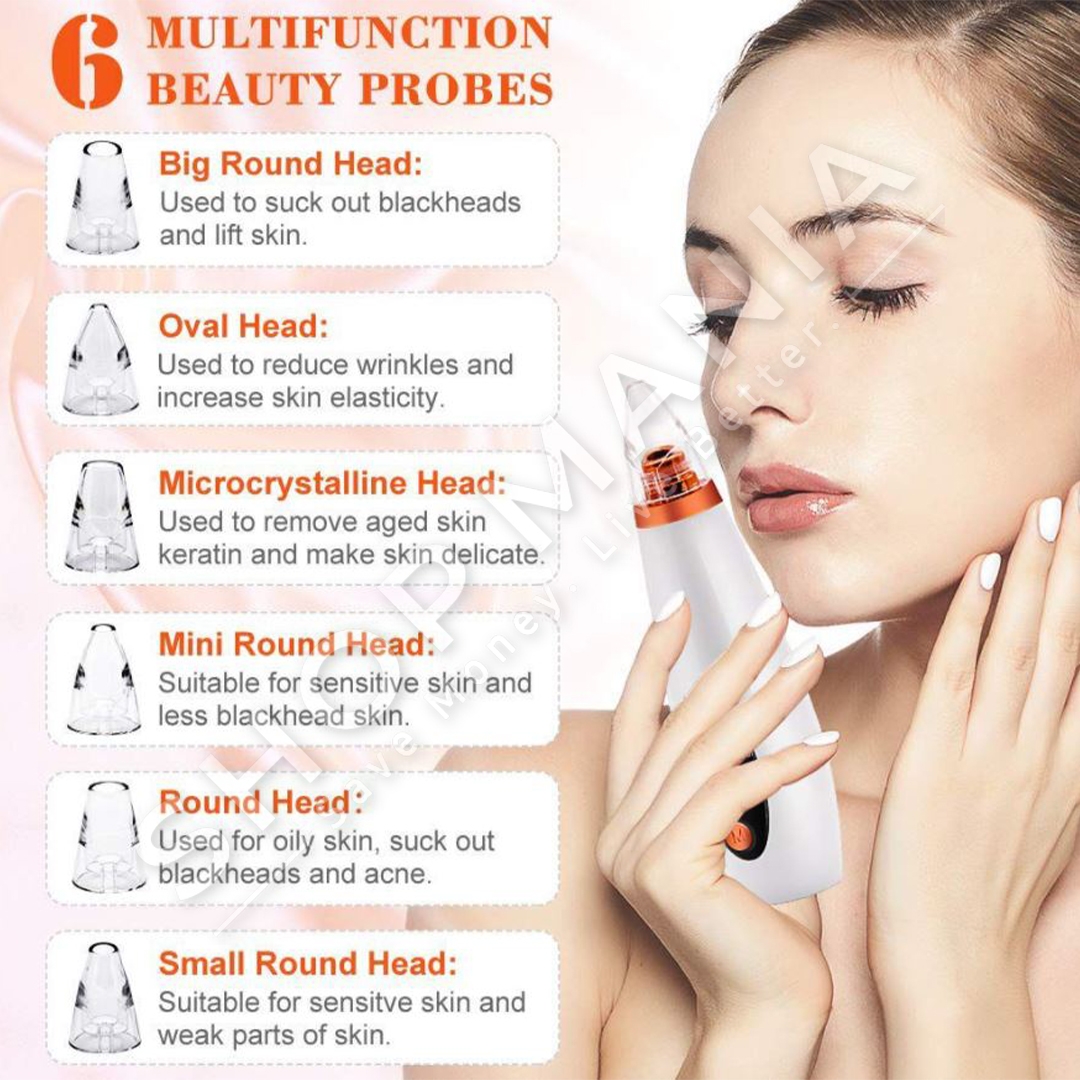 Pastrues multifunksional elektrik i pikave te zeza me material premium per perdorim afatgjate. E pajisur me 6 koka per heqjen e pikave te zeza, kutikulave dhe papastertive te lekures. Forca e thithjes eshte e rregullueshme me 3 shpejtesi.