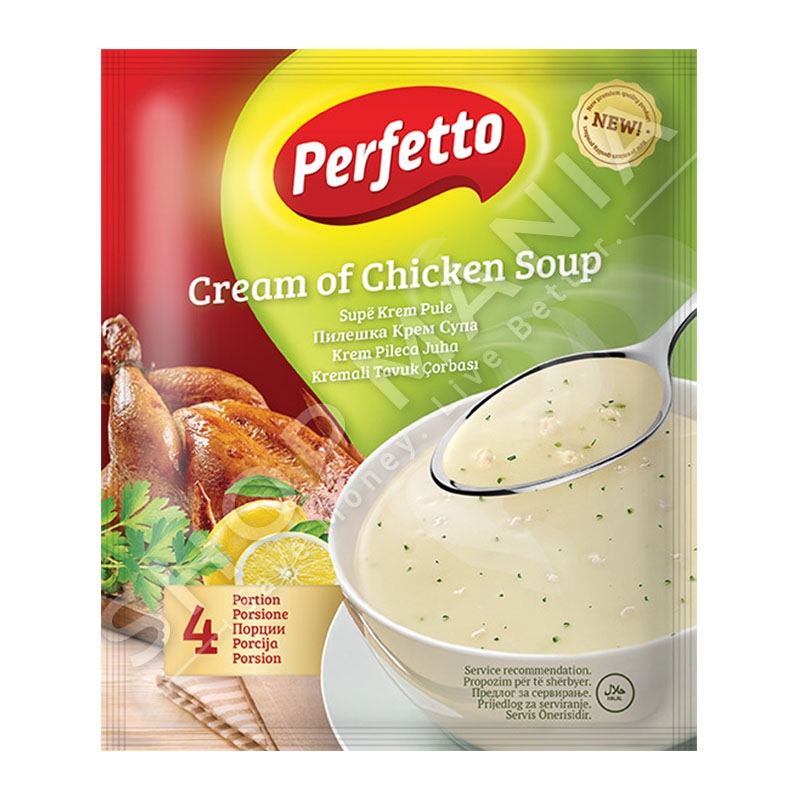 Supe krem pule e paketuar nga marka Perfetto.Supe me krem pule eshte nje pjate e pare shume e lehte ne pergatitje, e cila i mban te gjitha vlerat ushqimore.Mjaftojne vetem 5 minuta qe supa te ete gati.Pesha: 62gr