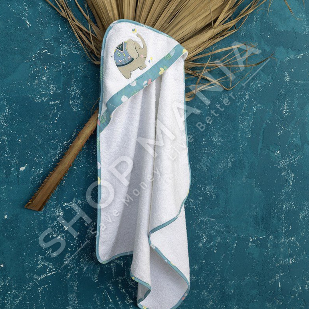 Peshqir 100% pambuk natyral, shume i bute dhe absorbues, i pershtatshem per lekuren e ndjeshme te foshnjes pas banjes se perditshme.