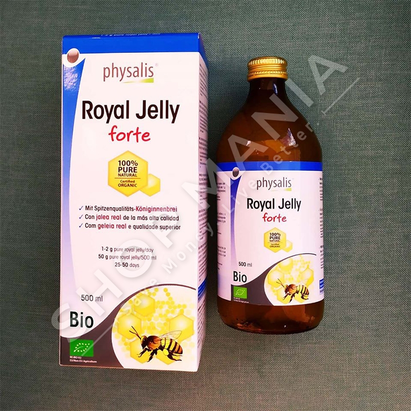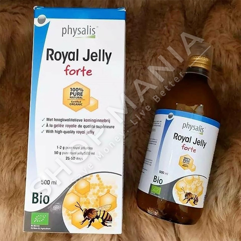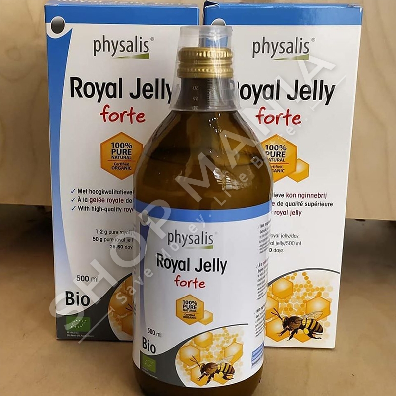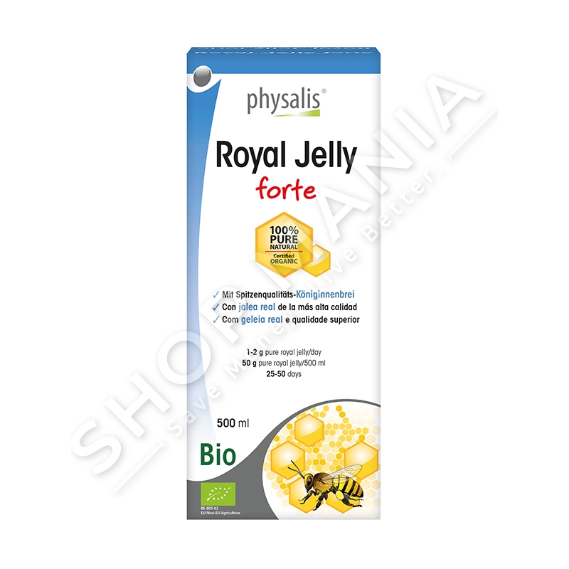 Physalis Royal Jelly Forte (me vere te bardhe dhe mjalte organik akacia) permban nje doze te larte te peltes mbreterore te fresket (1000 mg per 10 ml) e pasur me: