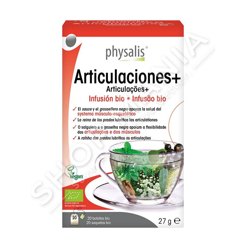 Pas nje moshe te caktuar artikulacionet ngurtesohen dhe mobiliteti i tyre reduktohet. Physalis Artikulacione+, infuzion bimor organik qe permban rrush serizi ose ndryshe ribiza dhe shelg suportojne shendetin e sistemit muskulo-skeletal. Specifika: