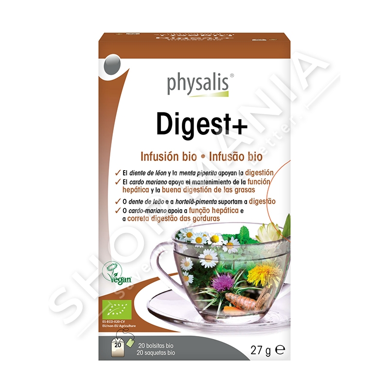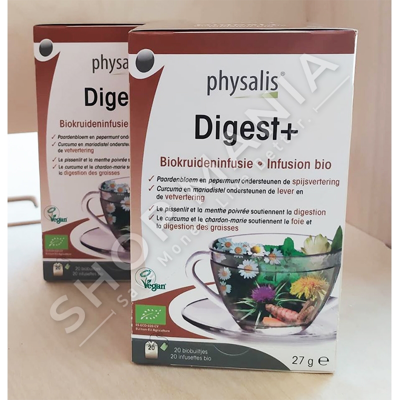 Përshkrimi: Shume e shpejte, shume e yndyrshme, shume aktive... keshtu eshte bere dieta jone duke na krijuar shpesh nje ndjesi fryrje dhe rendese ne stomak. Physalis sjell per ju Digest+ ne forme caji qe permban luleradhiqe, mente dhe kamomil qe nxisin tretjen.