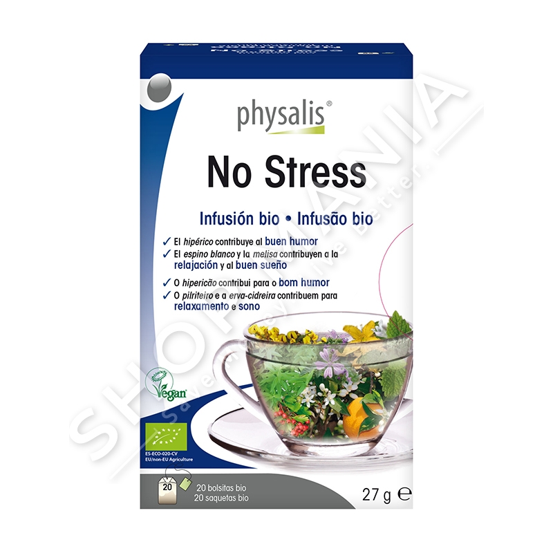 Periudhe stresuese ne shtepi, pune apo shkolle?! Caj Physalis no stress, me permbajtje bimore eshte zgjidhja e duhur per t'i thene lamtumire stresit. Permban lule basani, Crataegus punctata ( emri shkencor) me veti te njohura relaksuese.