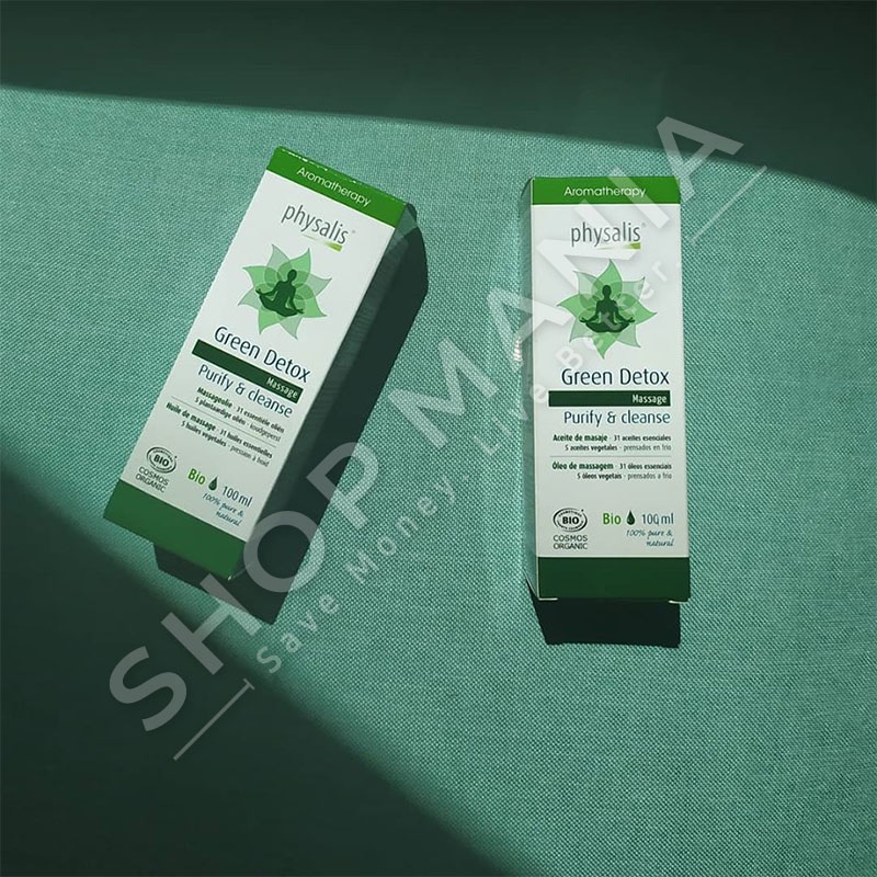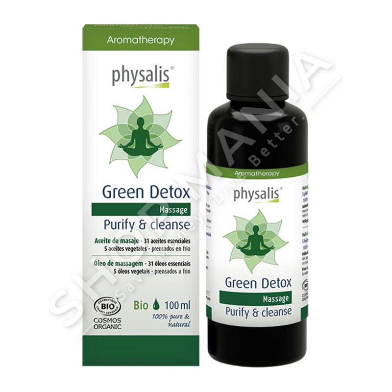 Pastroni dhe detoksfikoni lekuren nga toksinat, me Green Detox te Physalis, vajin masazhues qe ka ne perberje 31 vajra esenciale dhe 5 vajra vegjetale.