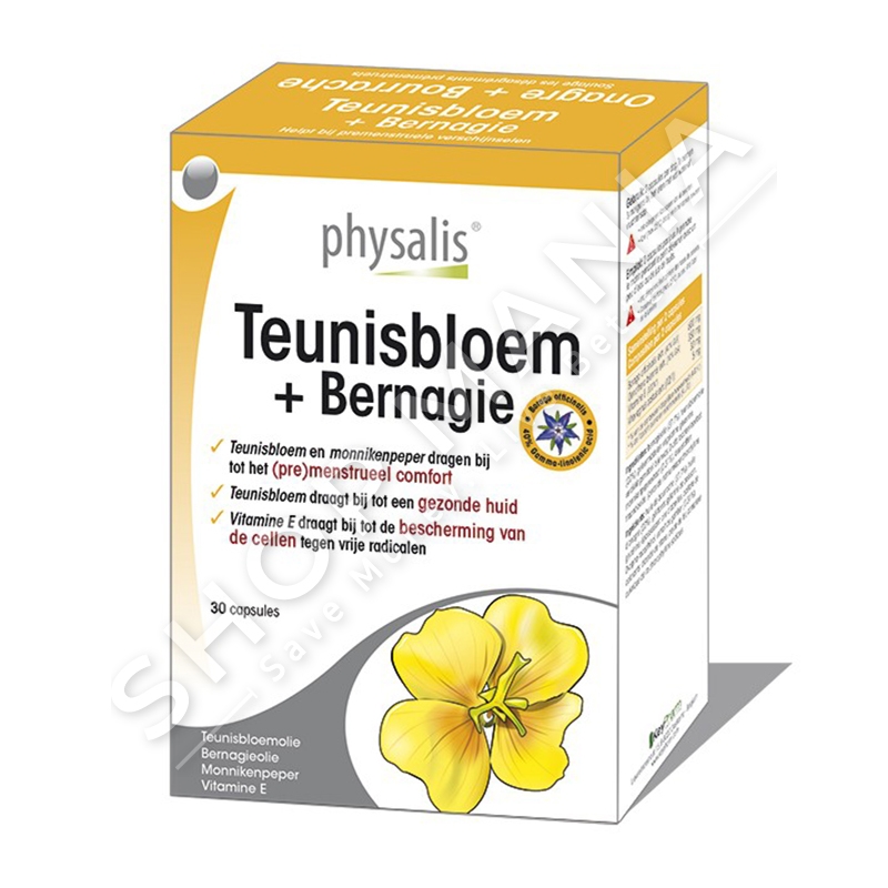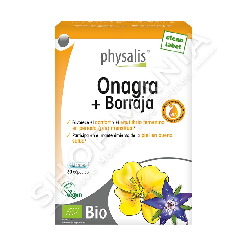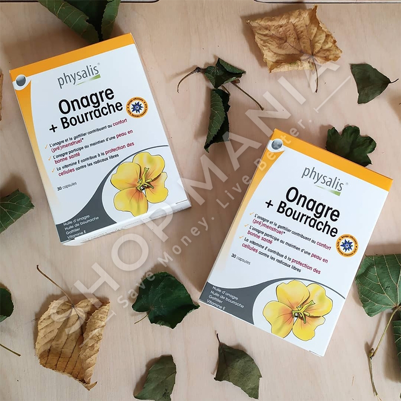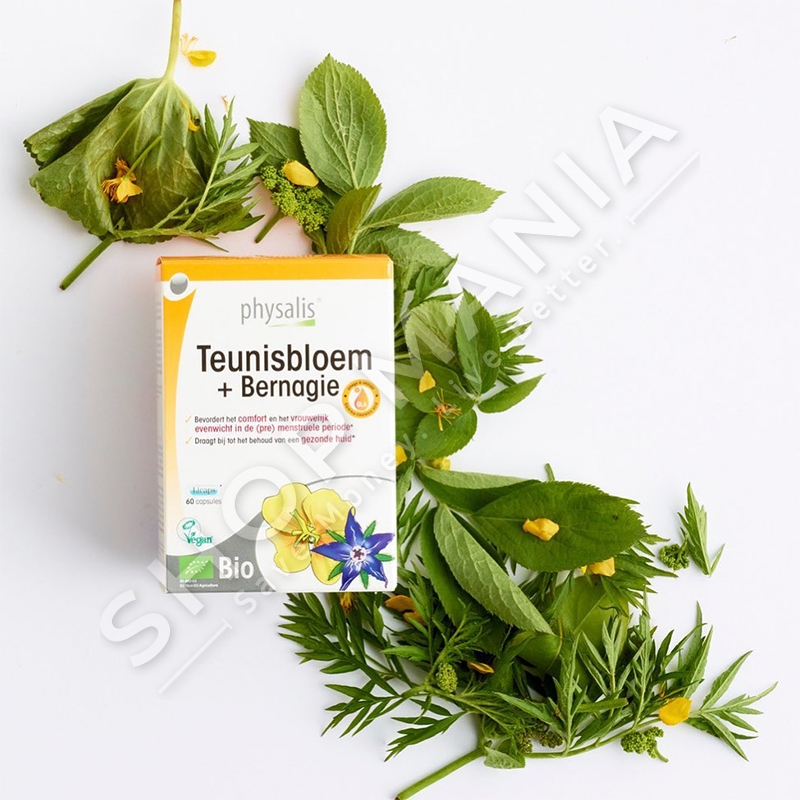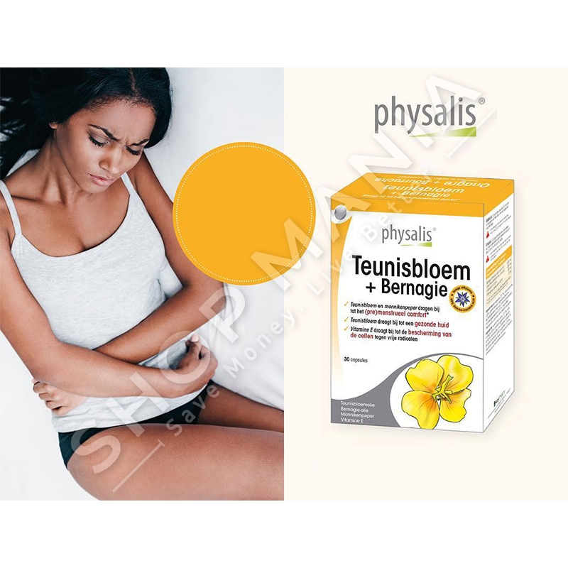 Physalis, Evening Primose dhe Borage, eshte nje suplement ushqimor bimor krijuar posacerisht per femren gjate diteve te veshtira te ciklit menstrual, kur crregullimet homonale sjellin ndryshime ne lekure ( akne, pucrra).Produkti eshte nje kombinim sinergjik i vajrave te Oenothera biennis ( emri shkencor) dhe Organic Borago ( emri shkencor) qe kontirbuon ne relaksimin gjate diteve te ciklit menstural duke mirembajtur lekuren.