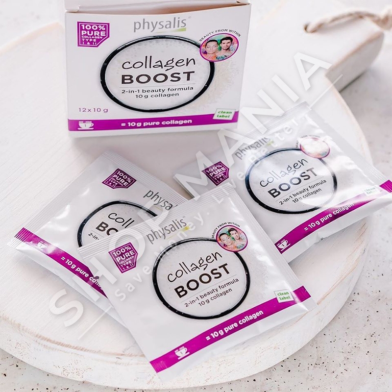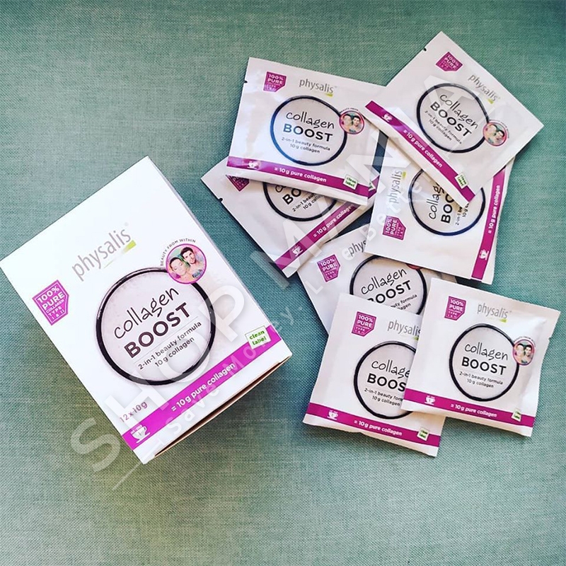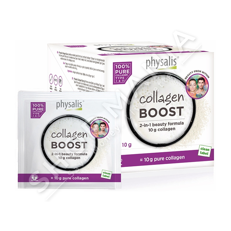 Produkti Collagen Boost eshte krijuar per ata persona qe kerkojne dozen me te mire te kolagjenit. Kolagjeni eshte perberesi kryesor i indit tone lidhor keshtu eshte esencial per nje lekure te bukur dhe te tonifikuar, por gjithashtu eshte e rendesishme si proteine strukturore ne ndertimin e kartilagove. Collagen Boost permban dy tipet e kolagjenit Tipi 1 peptidet e kolagjenit ( Naticol ® ) dhe kolagjeni nativ tipi 2 (b-2Cool ® ).