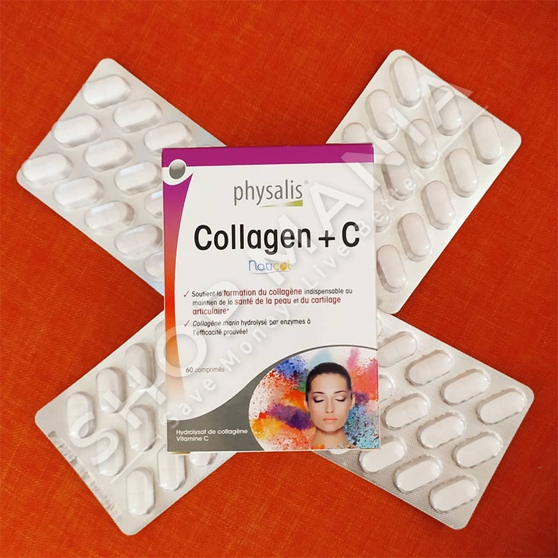 Per kete ka enduar Physalis me Kolagjen + vitamine C, nje suplement ushqimor prej 1000mg kolagjeni te presuar.
